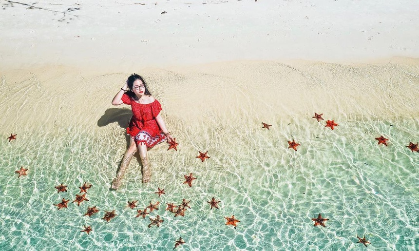 Sống ảo cùng sao biển: Đó là trải nghiệm không thể bỏ dở ở "vương quốc sao biển". Biển ở Rạch Vẹm không quá sâu, vào mùa khô có thể nhìn tận đáy, sao biển cũng dễ thấy hơn.
