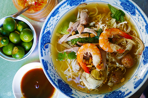Như tại Cần Thơ, bạn có thể tìm đến quán ăn Chánh Mập nằm trên đường Ngô Đức Kế, gần bến Ninh Kiều, chuyên phục vụ món bún gỏi dà. Địa chỉ tồn tại đã 44 năm, từ hồi bà chủ mới 16 tuổi. Quán ăn nằm trên mặt tiền đường. Ảnh: Di Vỹ
