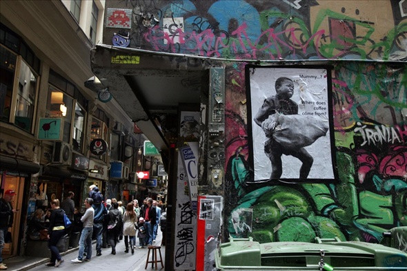 Nghệ thuật Graffiti bắt nguồn từ tiểu khu Bronx, New York (Mỹ). Vào những năm 1970, những thanh niên Mỹ đã viết tên của họ lên tường bằng những nét vẽ vô cùng độc đáo. Sau đó, những bức họa với nét vẽ tương tự như vậy xuất hiện ở rất nhiều nơi công cộng và nhanh chóng trở thành trào lưu. Nghệ thuật Graffiti cũng ra đời từ ấy và lan tỏa đi nhiều nơi. Tại 1 số quốc gia, Graffiti không được công nhận và trở thành môn nghệ thuật không chính thống. Tuy nhiên, người dân Melbourne lại vô cùng thích thú với những bức tranh đường phố. Họ thậm chí còn thuê những Graffiter về vẽ tại các bức tường nhà, cửa hàng.