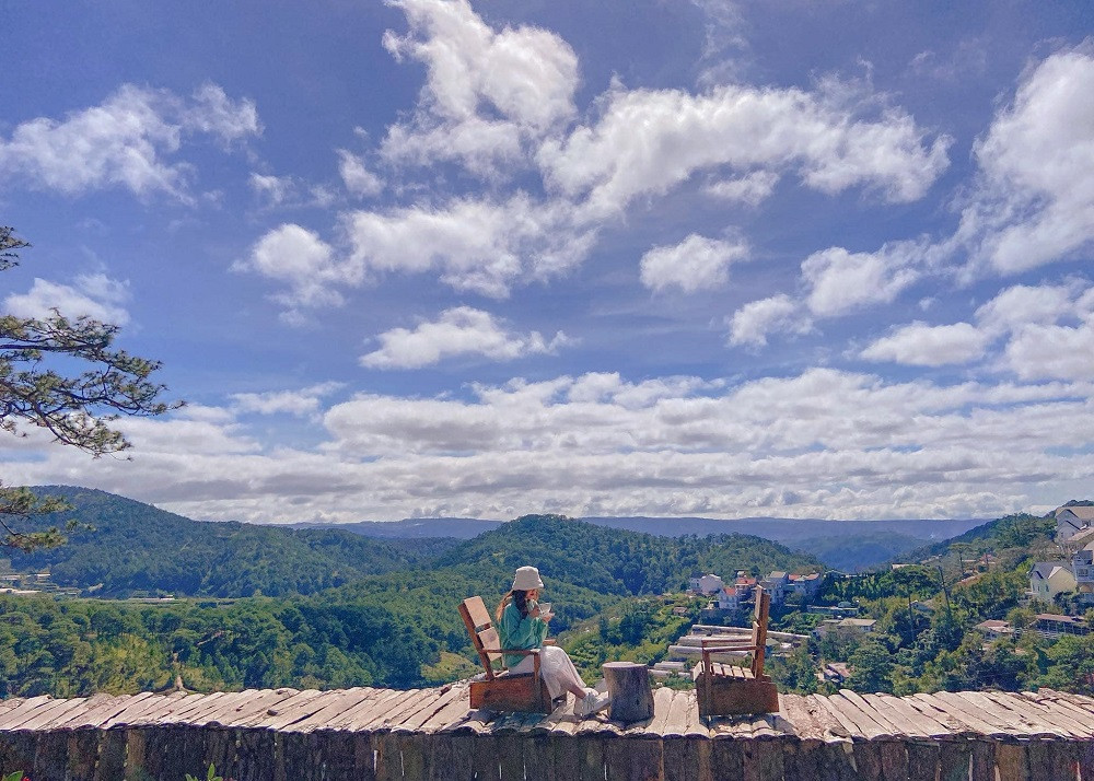 Tại tiệm cà phê này, du khách có thể ra góc ban công ngồi thư giãn và phóng tầm mắt ra xa ngắm nhìn vẻ đẹp của núi rừng Đà Lạt dưới ánh hoàng hôn lãng mạn, yên bình. Chắc chắn sẽ để lại trong lòng du khách những cảm xúc khó tả.