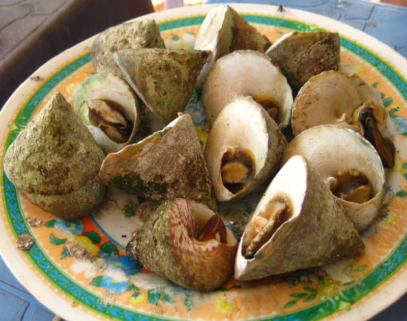 Khi nói đến đặc sản Côn Đảo thì không ít người sẽ nhớ ngay tới ốc vú nàng. Vú nàng là 1 loài ốc nhuyễn thể có hình chóp lệch, vỏ ngoài đen xám và mặt trong lấp lánh xà cừ. Món ốc này có thể làm đa dạng các món ăn như luộc, nướng hay trộn gỏi đều rất ngon.