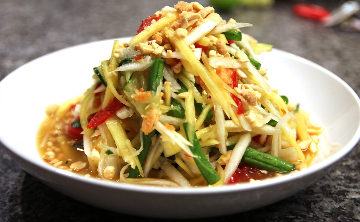 Đây là một trong những món ăn đặc trưng, tạo nên sự hấp dẫn riêng cho nền ẩm thực Thái. Chỉ là món gỏi trộn nhưng hương vị lại độc đáo, chinh phục được rất nhiều vị khách khó tính.