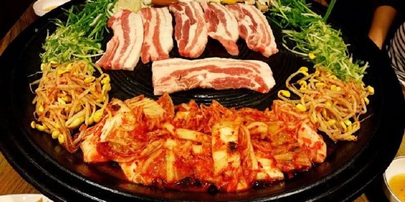 Thịt ba chỉ nướng có thể được coi như như là thịnh hành nhất tại đất nước xinh đẹp Hàn Quốc. Thực khách có thể thưởng thức món này ở các tiệm bình dân mà không cần phải vào nhà hàng sang trọng. Giá vào khoảng 30K-50K won tùy vào quán.
